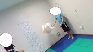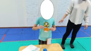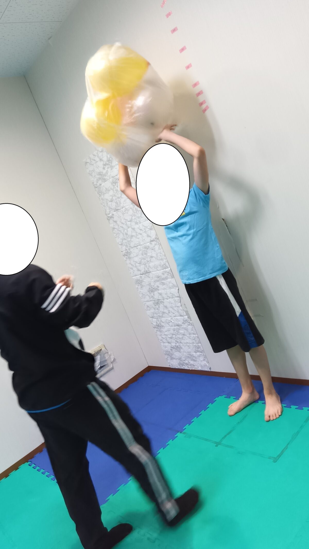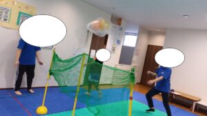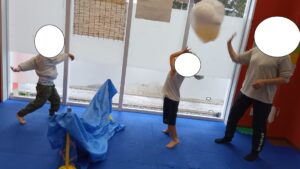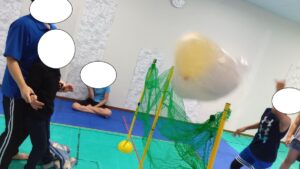 大きいビニール袋に風船をいれてみんなでバレーボール対決!