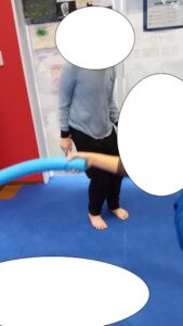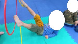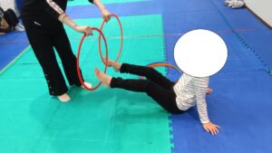 フラフープにタッチしていきます!