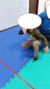 アヒル歩きでスタート・・・低い姿勢を保ちながら脚力と体幹を養います。