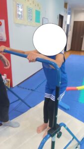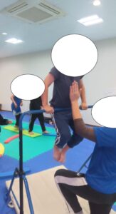 鉄棒の上ですずめの姿勢を維持し懸垂力・支持力を養います。