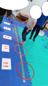 音楽をかけながら、ボルタリング・忍者橋・平均台を歩きます♪