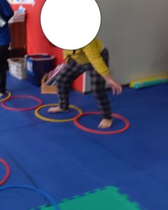 フープを使ったスクワット運動も行いました。